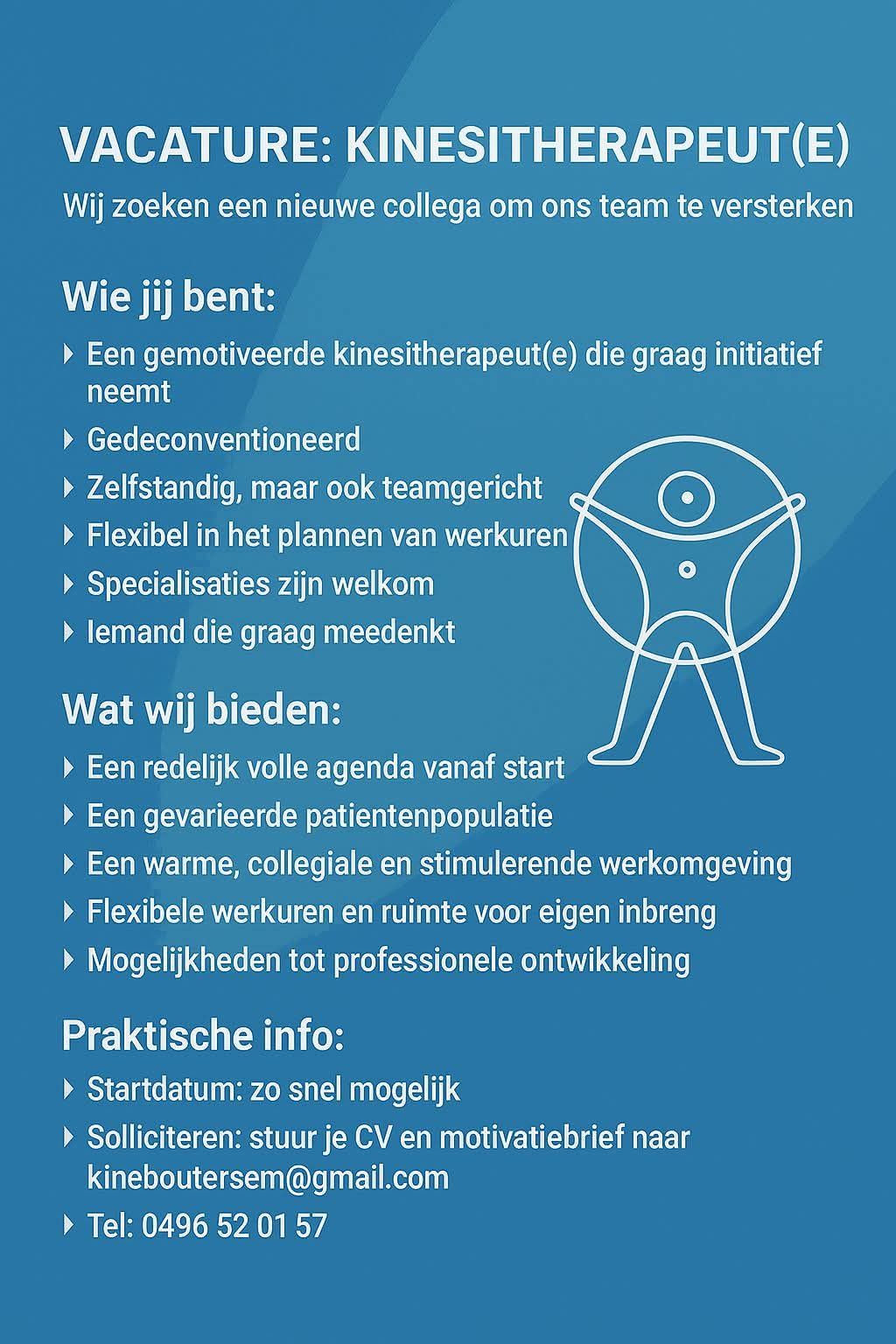 Ben jij de persoon die wij zoeken? Contacteer ons dan asap via info@kineboutersem.com